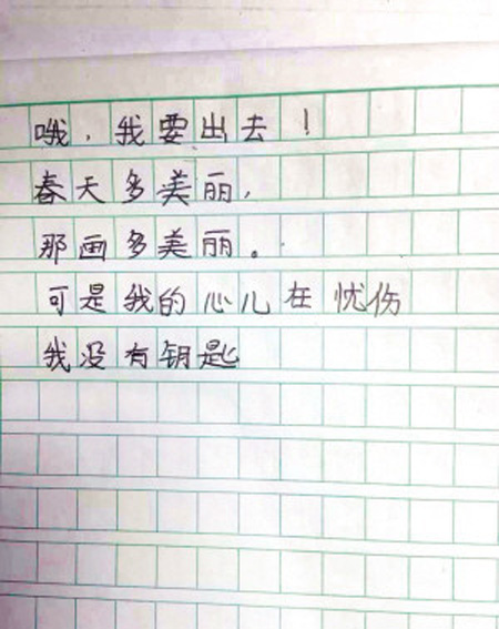 小学生写诗叹周末忙:没有钥匙的星期天!